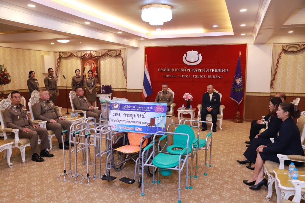 มูลนิธิตำรวจไทย-นานาขาตินำโดย พล.ต.ท.ดร.มณฑล เงินวัฒนะ ประธานมูลนิธิ พร้อมด้วยคณะผู้บริหารมูลนิธิเข้าพบ พล.ต.ท.นิตินัย หลังยาหน่าย ผู้บัญชาการตำรวจตระเวนชายแดนเพื่อมอบกายอุปกรณ์ สำหรับใช้ในการรักษา ฟื้นฟูร่างกาย และสร้างขวัญกำลังใจ