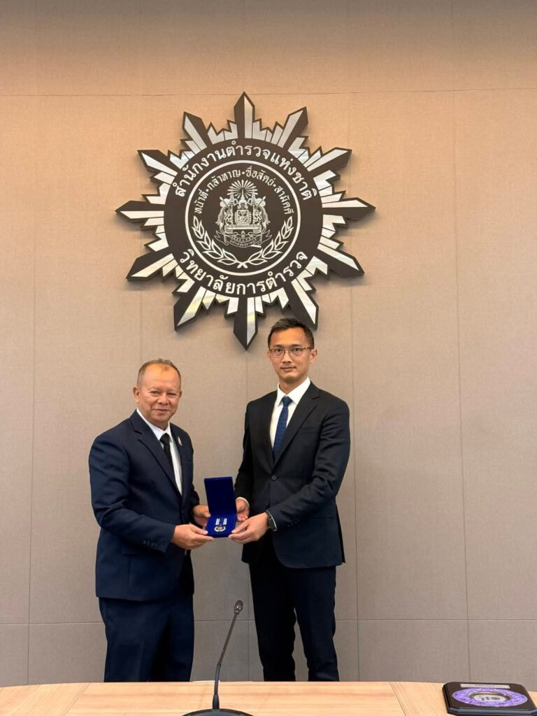 พล.ต.ท.ดร.มณฑล เงินวัฒนะ ประธานมูลนิธิตำรวจไทย-นานาชาตินำ Chief Superintendent Choi Tung-tsoi รองผู้อำนวยการวิทยาลัยการตำรวจ สำนักงานตำรวจแห่งเขตปกครองพิเศษฮ่องกง